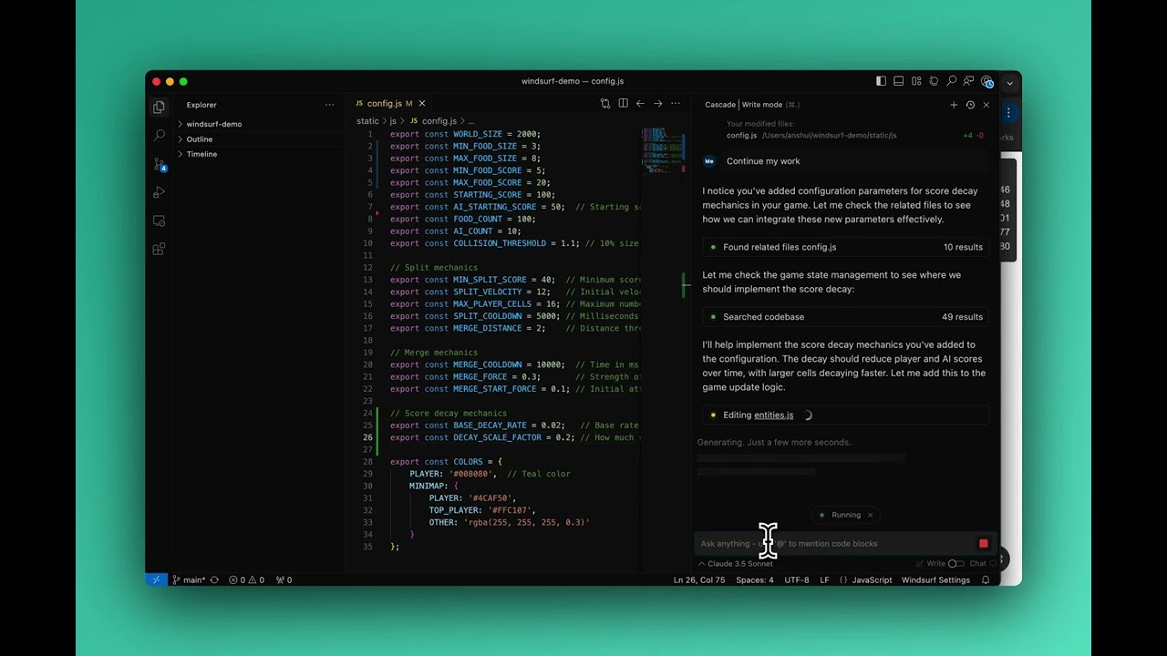 Windsurf, recently acquired by OpenAI, is an AI-first development environment with a heavy focus on enabling collaborative development. Windsurf is best for dev teams that want to generate entire applications using AI in a short period of time, making it especially ideal for startup teams.
